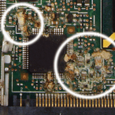 Corrosion of electronic equipment can occur when corrosive gases, such as hydrogen sulphide, attack sensitive computer controls and other critical electronics. These gases attack edge connectors, pin connectors, IC plug-in sockets, wire-wrap connections, and other microelectronic components.