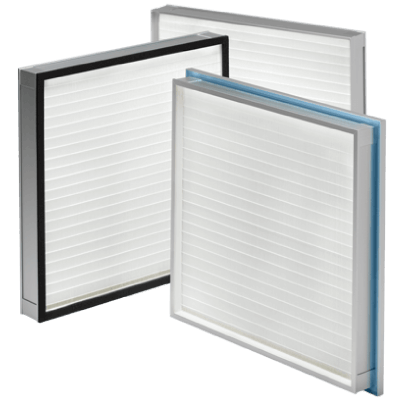 Energy efficient mini-pleat filter with a sturdy aluminum frame, boron-free media pack and outgassing-free separator. Final filtration for sensitive microelectronic cleanrooms and laminar airflow systems.