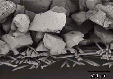 Microphotograph of filter media showing fiber-carbon matrix used to maximize available carbon surface area.